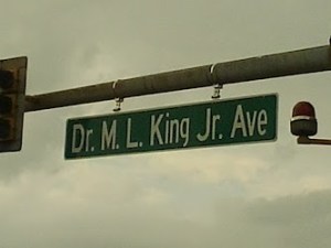 One very noticeable thing is the trio of rather large signs on Second, Third, and Front Streets. The seven remaining streets in that vicinity all have normal-sized signs. Each street that carries the large sign is a street on which merchants pander to tourists and has nothing to do with honoring the works or sentiments of Dr. King.